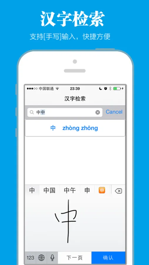 > 支持手写输入,汉字检索功能