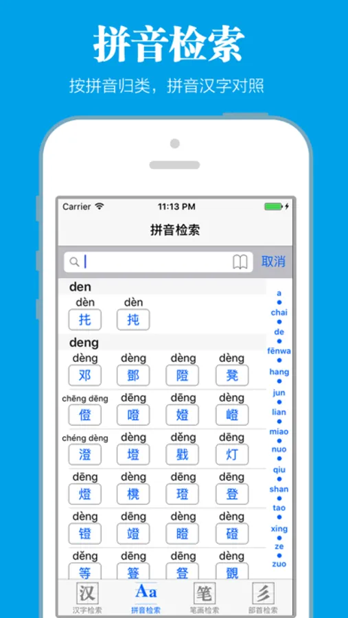 > 支持方便的拼音检索功能