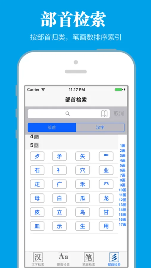 > 支持强大的部首检索功能
