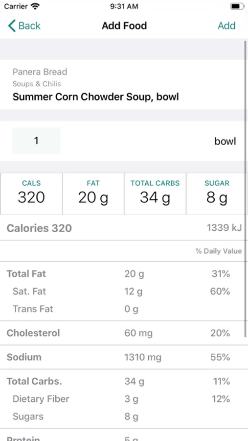 • Track more than calories and carbs: Fat, sugar, sodium, cholesterol, fiber, protein, calcium and much more.