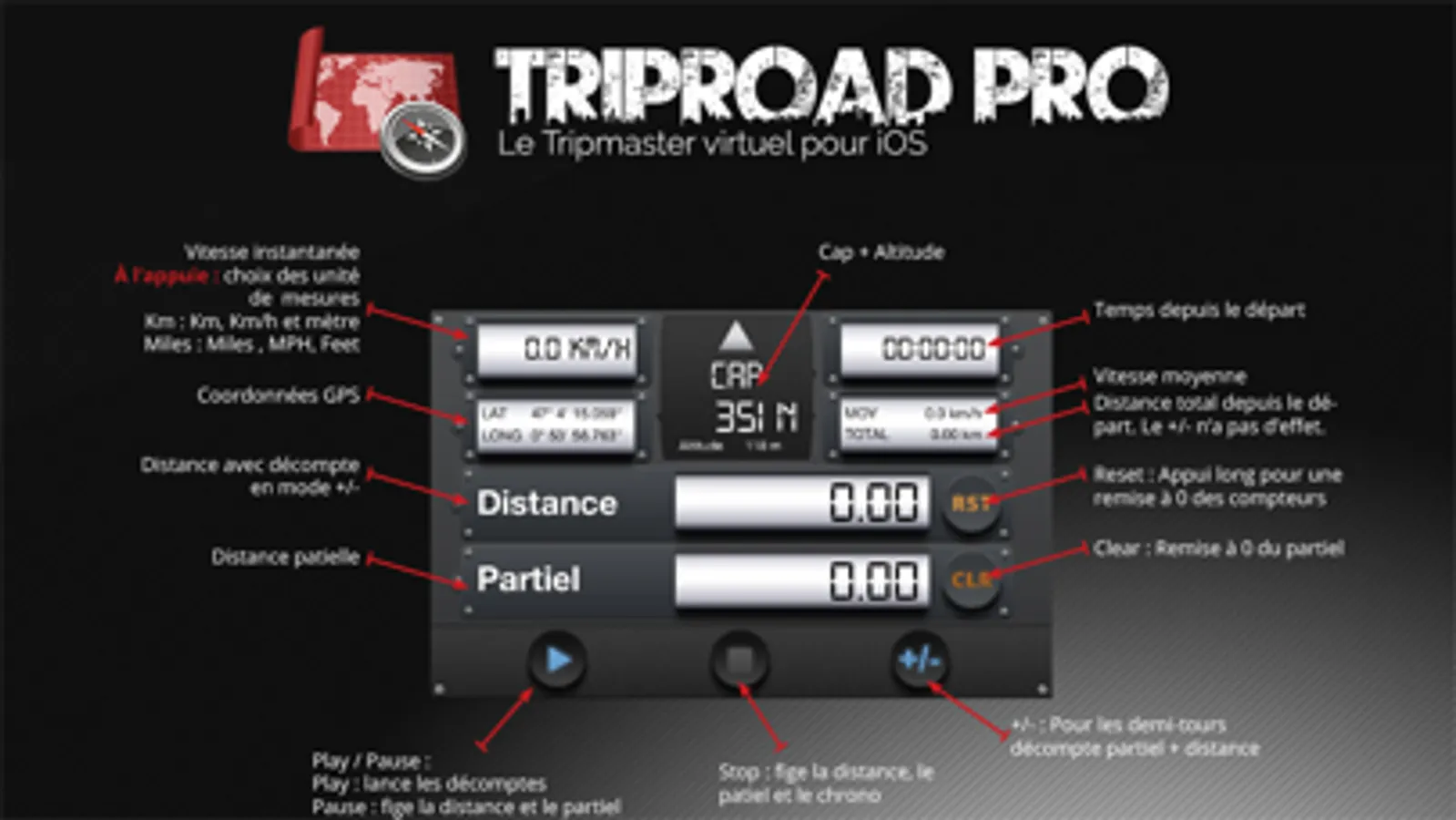 TripRoad is indispensable for navigation 4X4 Road Book,bike,Historic rallye odometer.