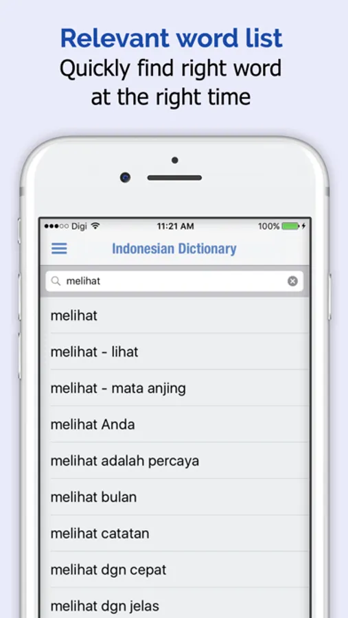 • Bilingual English to Indonesian and Indonesian to English dictionary