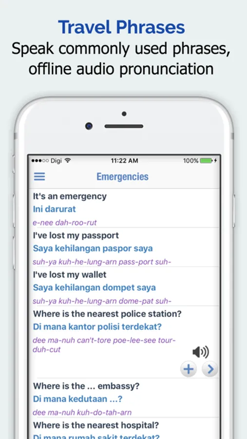 • Phrase book, Phrase of the day and Phrase Card helps to speak common phrases