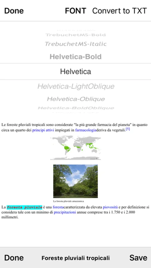 - Import for RTF, TXT, HTML documents via file sharing, copy/paste, Open In, email attachments, etc.. (with the ability to modify them once imported)