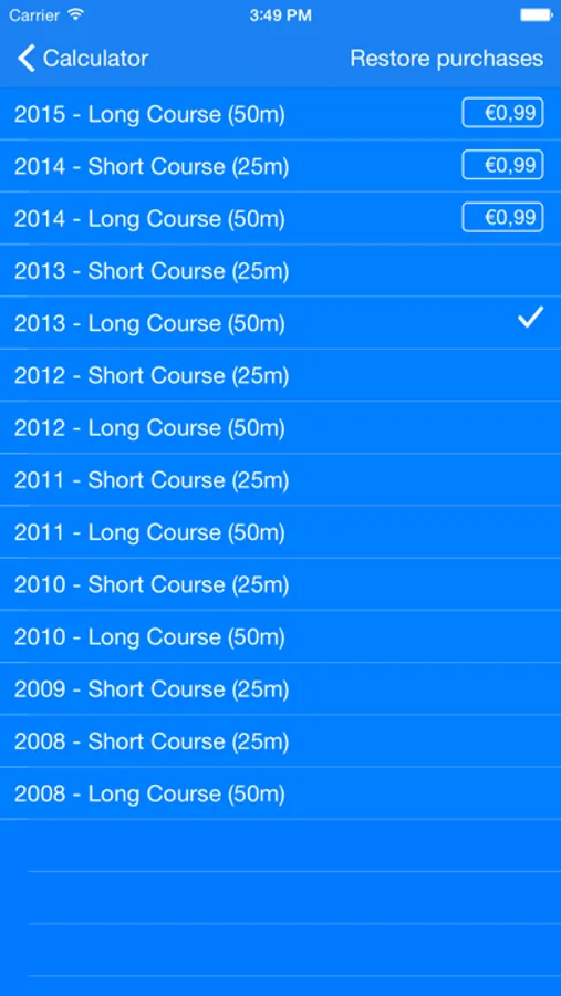 Long course (50m) 2019, 2018, 2017, 2016, 2015, 2014, 2013, 2012, 2011, 2010 and 2008