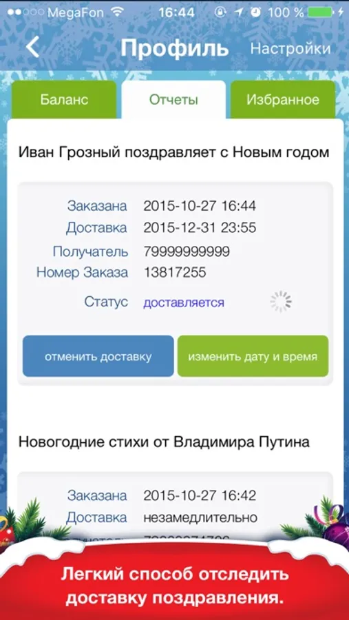 Ты будешь точно знать, что адресат получил и прослушал твою открытку благодаря функции отчет о доставке!
