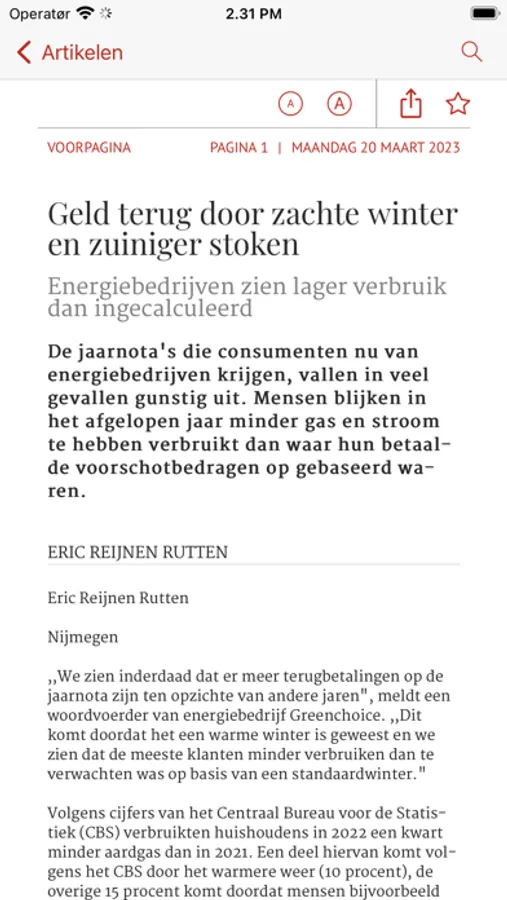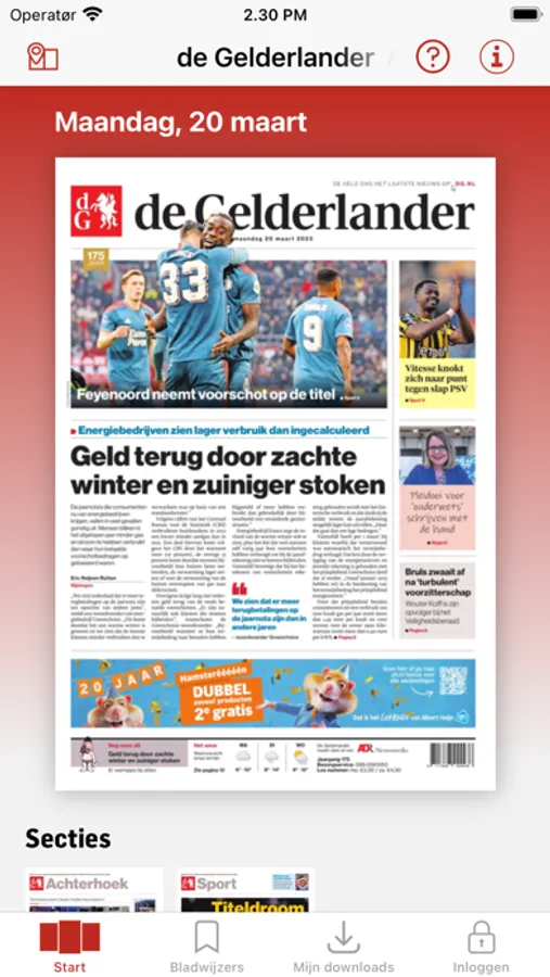 Eenmaal gedownload is de krant ook zonder internetverbinding te lezen en je kunt automatisch downloaden instellen.