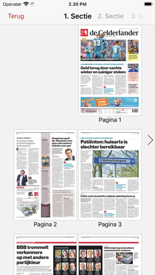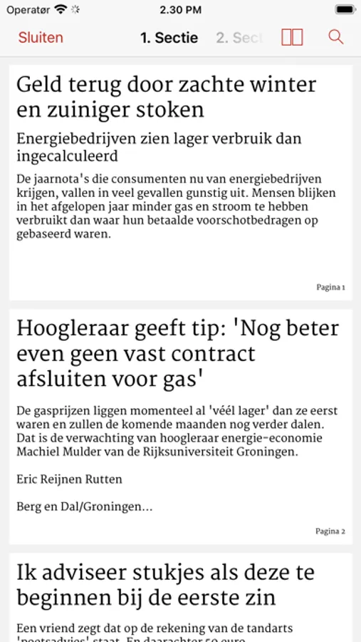 Bepaal zelf hoe je wilt lezen: per pagina, zoals de papieren krant, of per artikel vanuit verschillende nieuwslijsten.