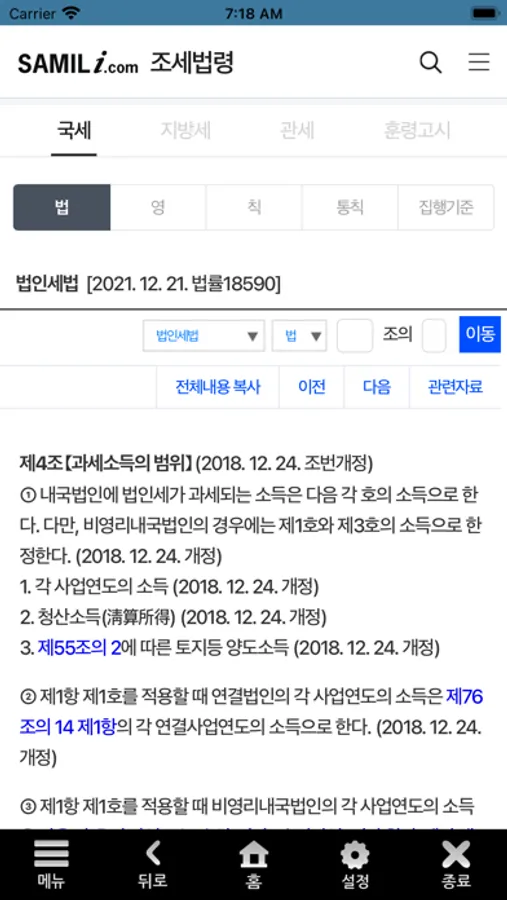 : 개정세법, 주요세법, 기타세법, 3단비교보기, 노무법령, 대한민국 현행법령,