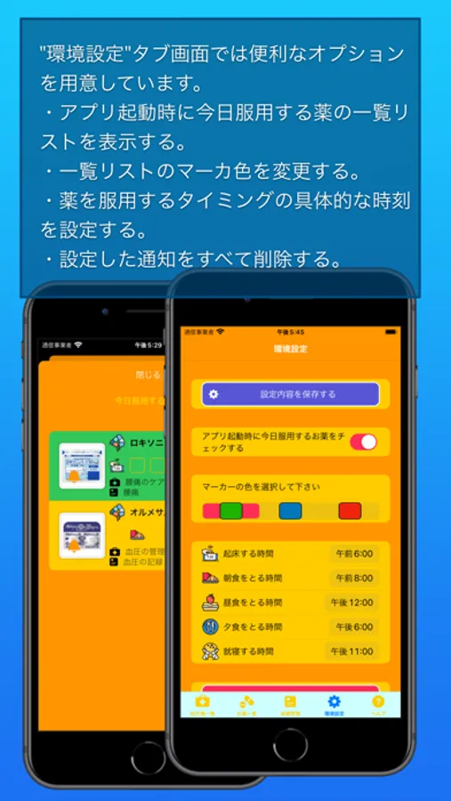 ・アプリ起動時に今日服用するお薬の一覧リストを表示するオプションを用意しています。