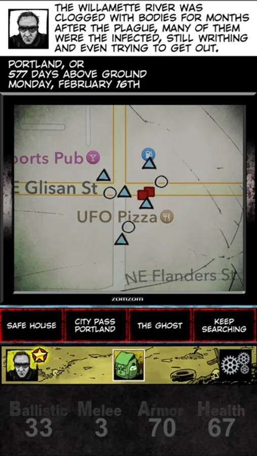 Survivors will find real world location challenges like the Newark Cinema in Delaware, Restaurants in Portland, Oregon, and even the Buddy Holly museum in Lubbock Texas to name just a few, as well as hundreds of other challenges that can be found in any town in the country. Everyday coffee shops, fast food restaurants, hardware stores and malls are all transformed to become the backdrops for survivor strongholds, hidden troves of weapons and supplies, and dangerous traps set by rival survivors. No matter where you go when you are playing Survivor Z, you are in the realm of the undead, and no place is safe.