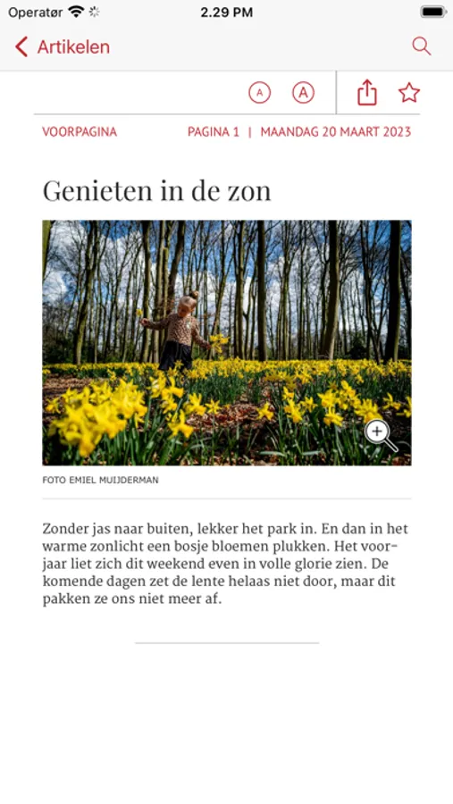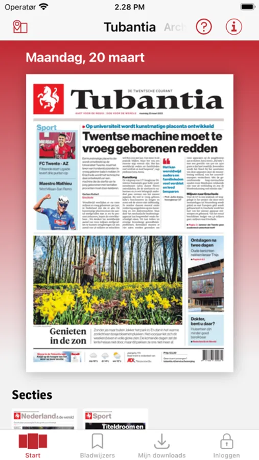 Eenmaal gedownload is de krant ook zonder internetverbinding te lezen en je kunt automatisch downloaden instellen.