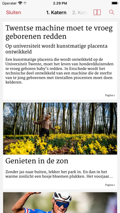 Bepaal zelf hoe je wilt lezen: per pagina, zoals de papieren krant, of per artikel vanuit verschillende nieuwslijsten.