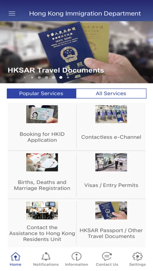 • Using Immigration Department Mobile Application, data transmission fees may be incurred for transmitting data through mobile devices. You are suggested keeping track of data usage from time to time.