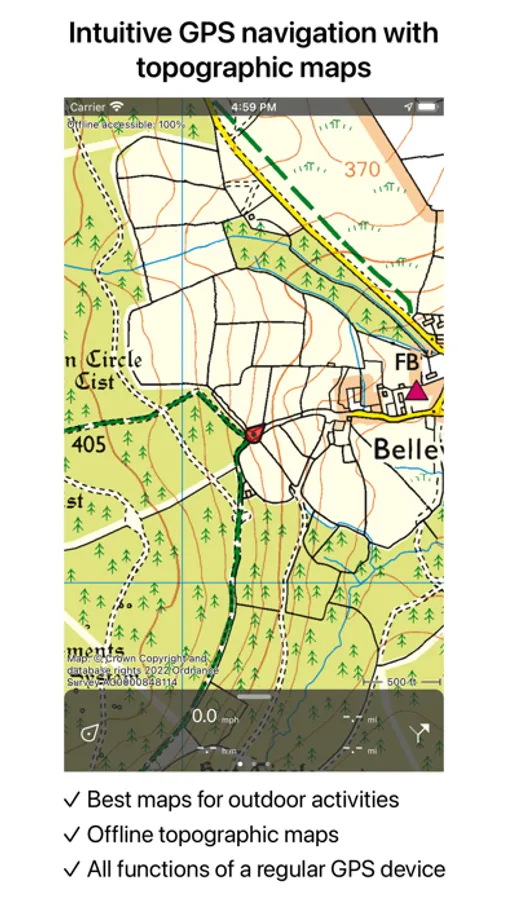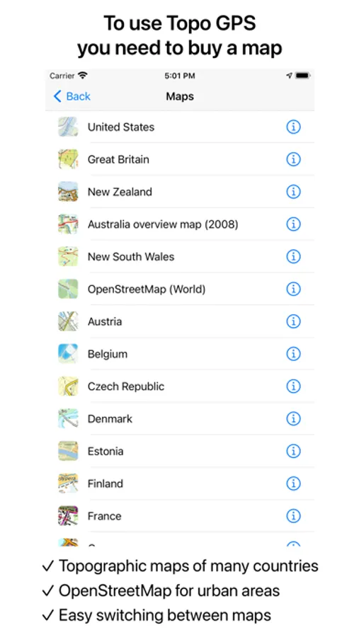 * Official topographic maps of many countries, including Great Britain (OS Explorer), New Zealand and Australia are available as in-app purchase.
