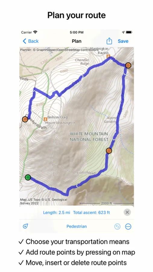 * Planning routes via route points.