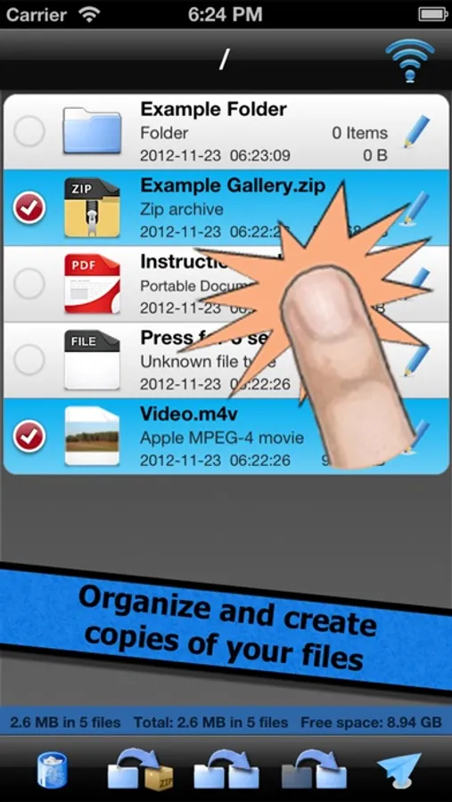 - The capability to edit files, copy and move them easily just pressing continuously over the files to edit them.