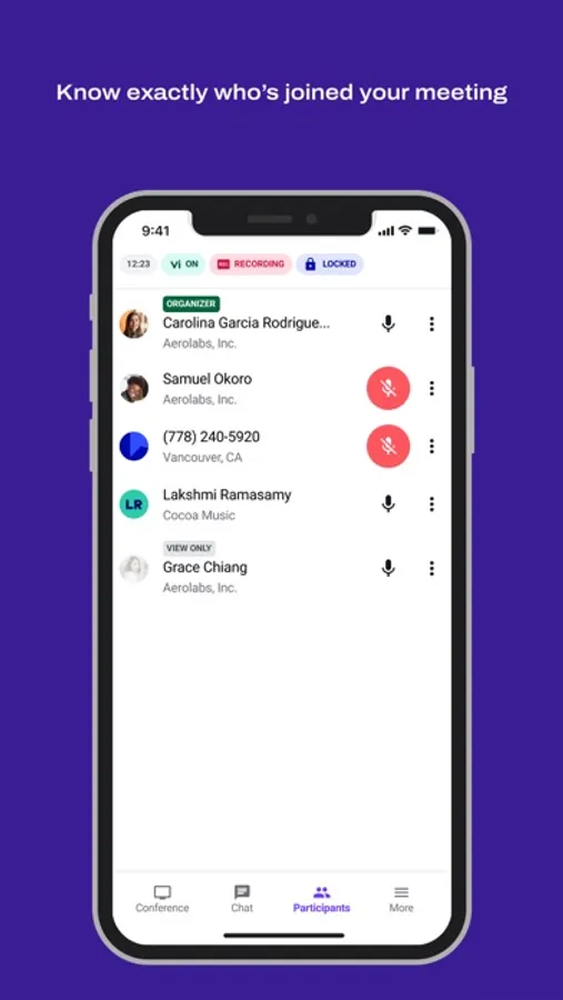 With displayed participant cards, never question who’s joined the call or speaking. Opt to lock your meeting once everyone’s joined to add an extra level of security.
