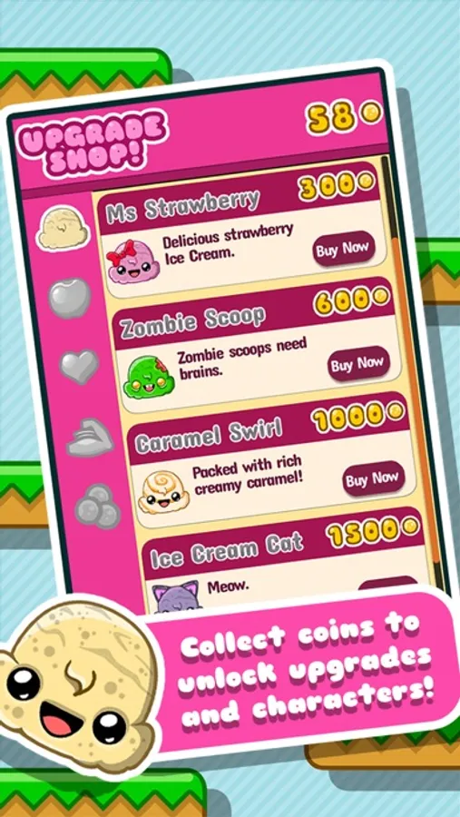 Collect more ice cream characters by picking up the coins in the game, or you can use your coins to upgrade power ups!
