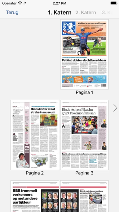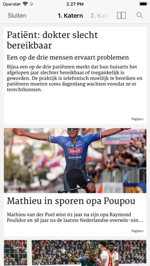 Bepaal zelf hoe je wilt lezen: per pagina, zoals de papieren krant, of per artikel vanuit verschillende nieuwslijsten.