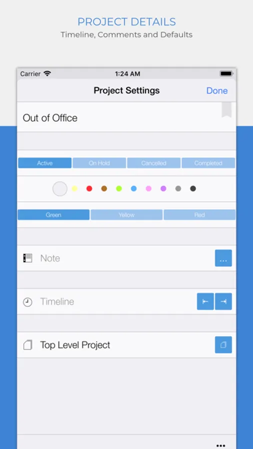 • Project Status: Active, On Hold, Cancelled, Completed