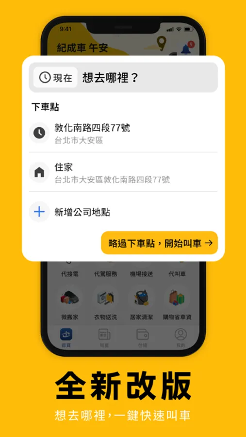 ● 代叫車:不是自己要搭車嗎?以APP協助親友叫車,由他人自行支付車資,也可用自身綁定支付協助對方付款