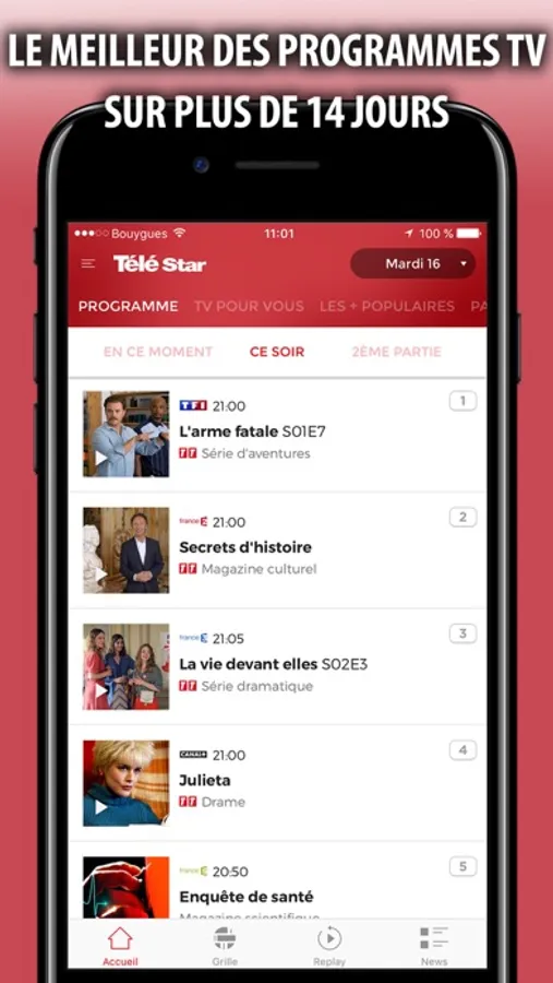▶ Accédez rapidement aux PROGRAMMES DU MOMENT, DU SOIR ET DE 2ÈME PARTIE DE SOIRÉE sur plus de 14 jours