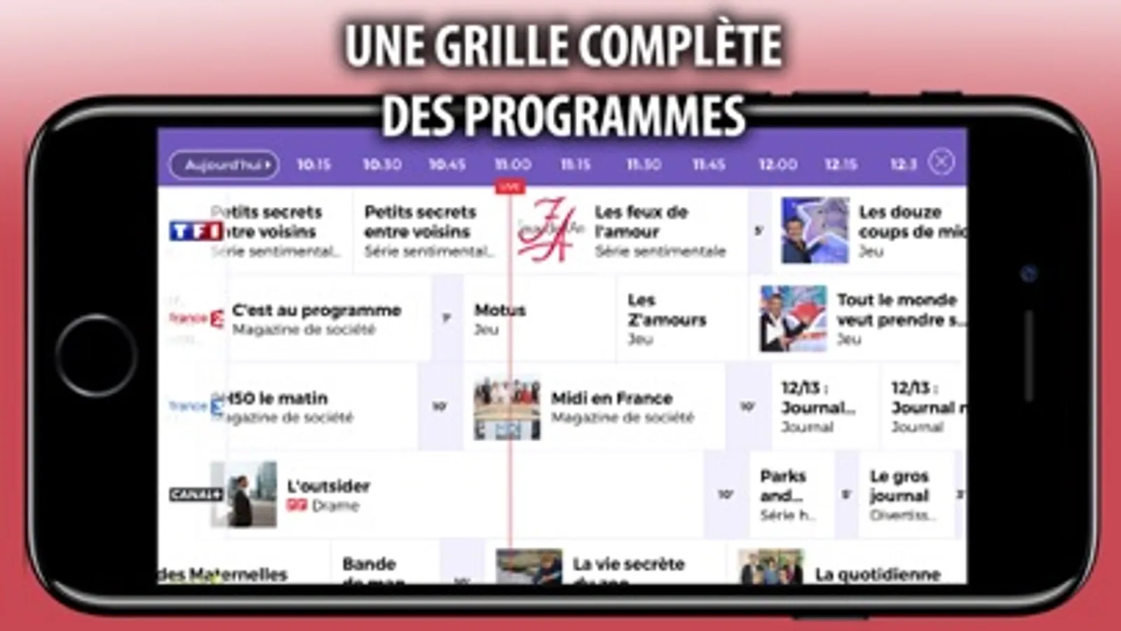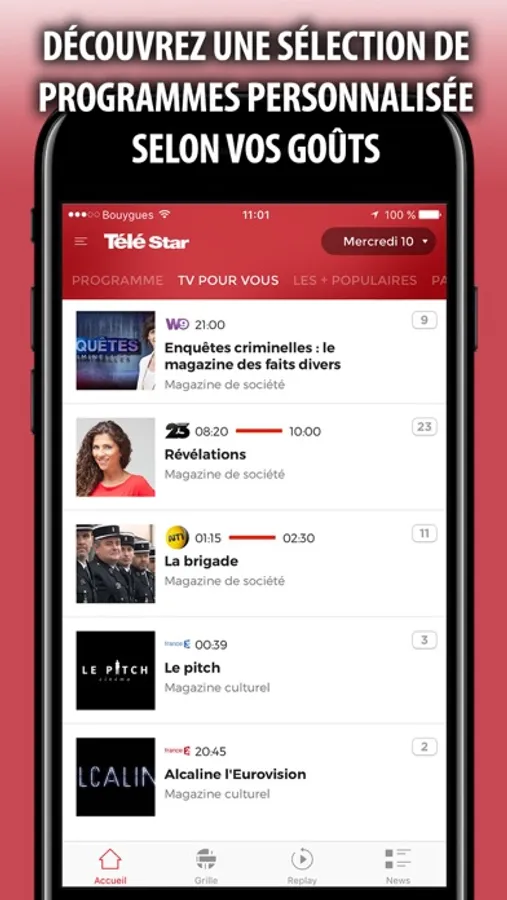 ▶ PROGRAMMEZ DES ALERTES pour être prévenu du début de votre programme: vous serez alors averti 10 minutes avant le début du programme par un push notification afin de ne plus jamais manquer une émission ou un épisode !