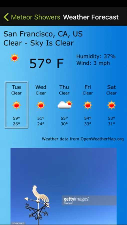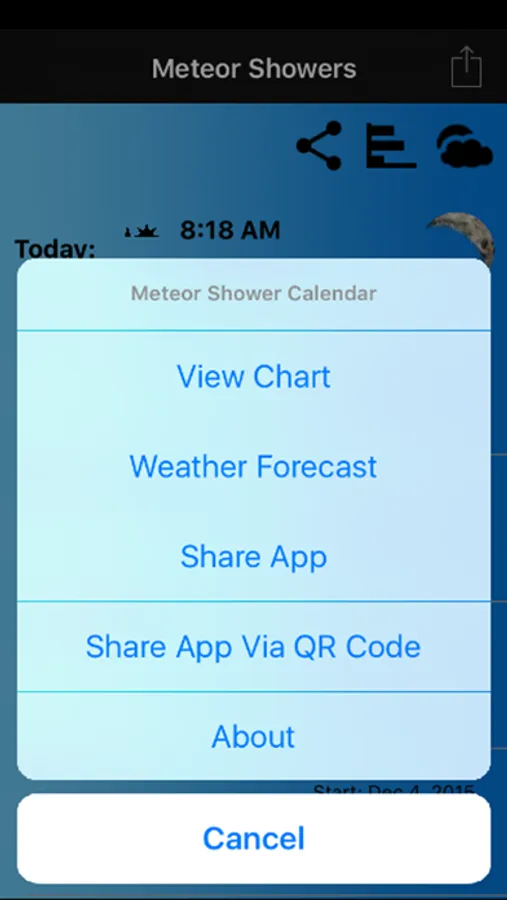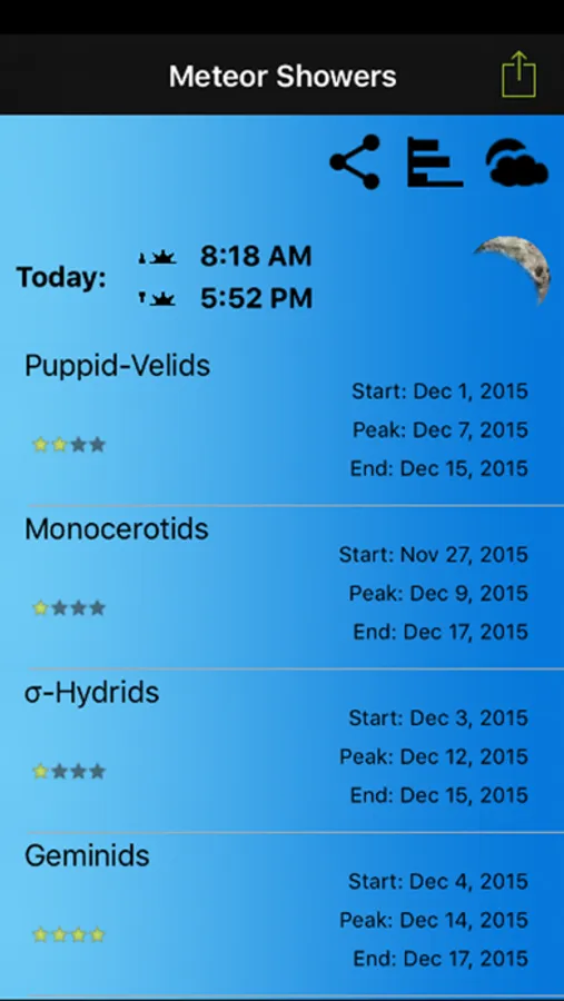 Would you like to know when the next meteor shower is? This app will display a list of upcoming meteor showers and the approximate date in which they will peak with specific details on each.