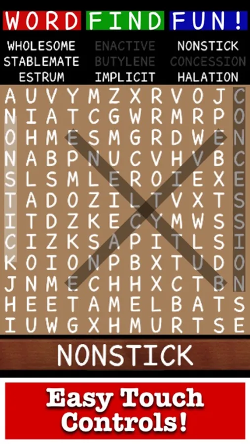 • Stuck? menu option to start a new puzzle, just like turning the page in a word search book to try the next board
