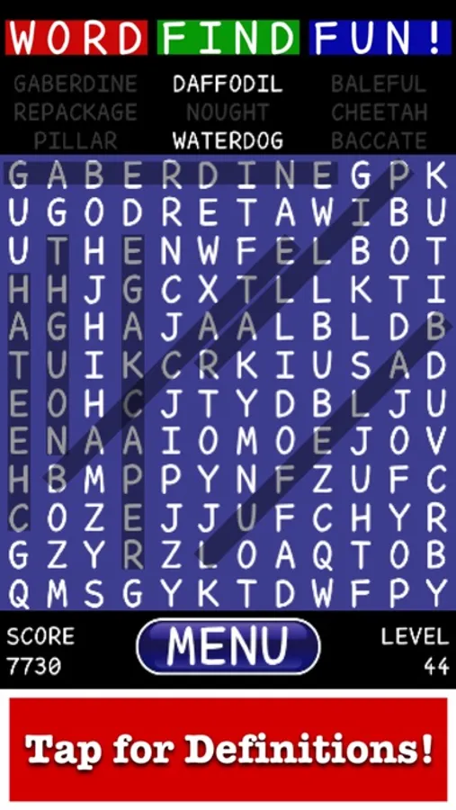 FIVE STARS - "The best word find app that I've played. Excellent Words. Challenging and educational. You can get the definition of the words and add them to your everyday vocabulary." --Trudy alleys