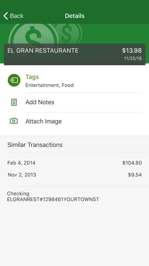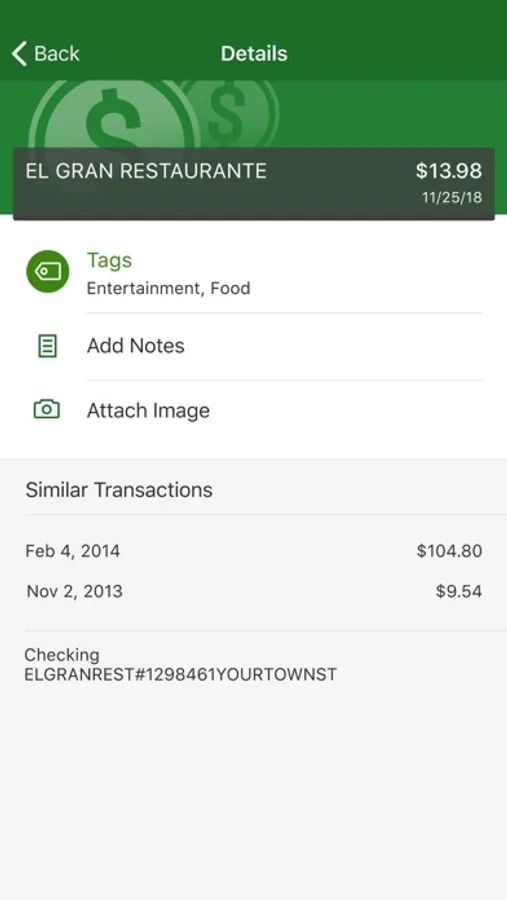 Add Tags, Notes, Images: By enhancing transactions with custom tags, notes or photos of a receipt or check, you have the ability to stay organized and find exactly what you’re looking for when searching through your finances.