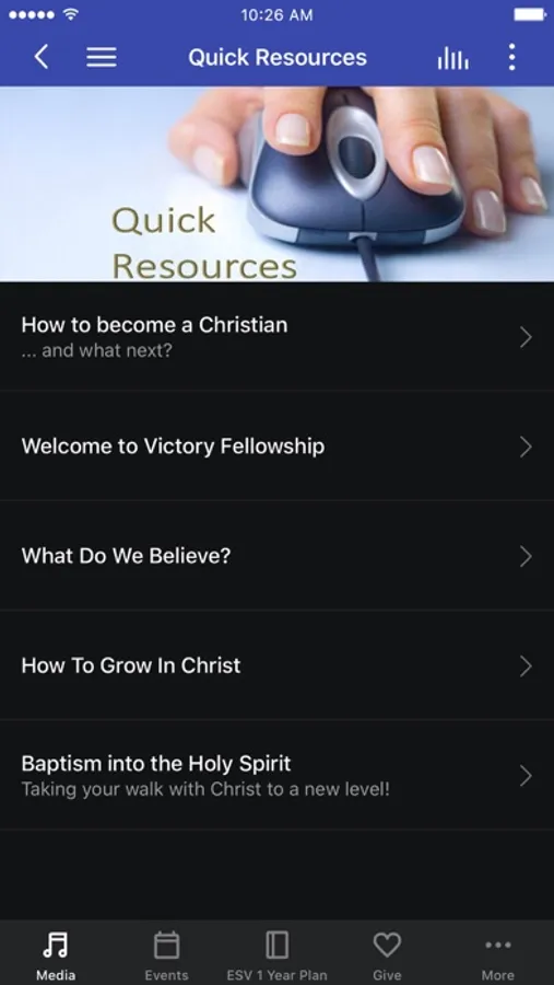 The Victory Fellowship Emporia app was developed with the Subsplash App Platform.