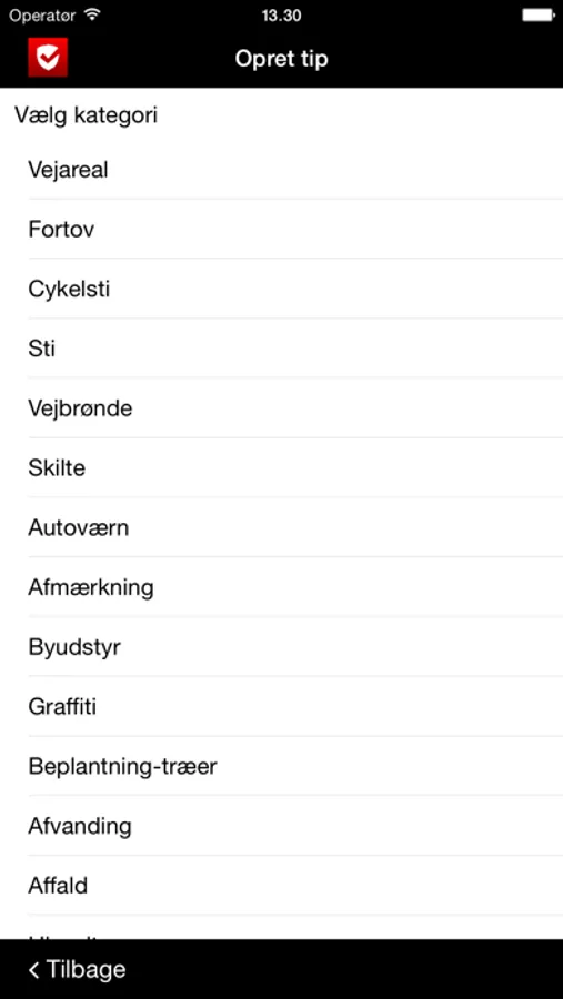 Du starter Borgertip og kan så vælge imellem en række forskellige typer af indberetninger som eksempelvis: