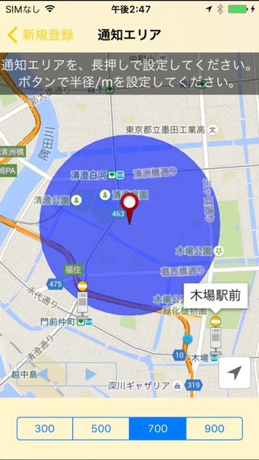 ・好きなエリアにバス等が来るとアラームを鳴らすことができます。