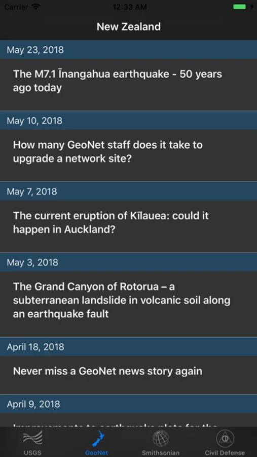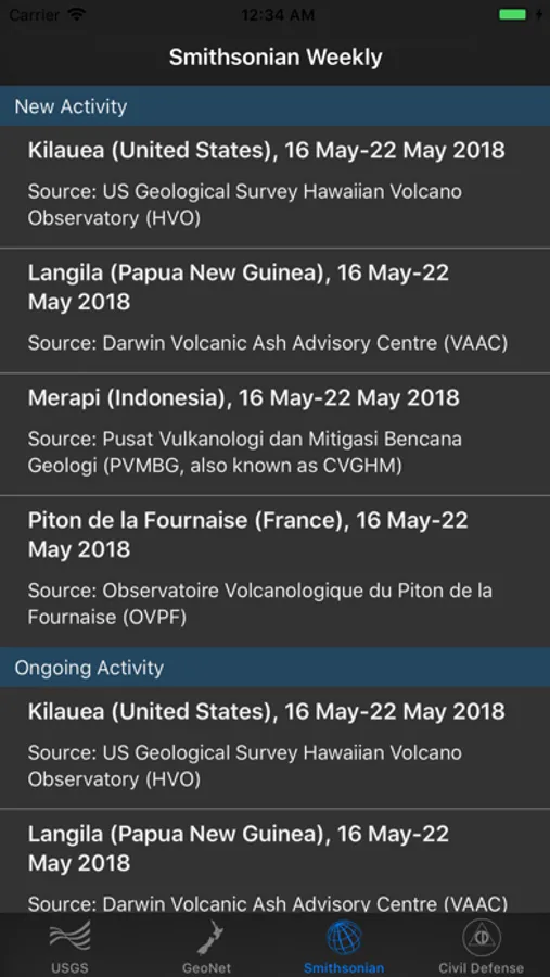 New for Volcano Updates, support for New Zealand by way of GeoNet news feed. GeoNet is a collaboration between the New Zealand Earthquake Commission and GNS Science.