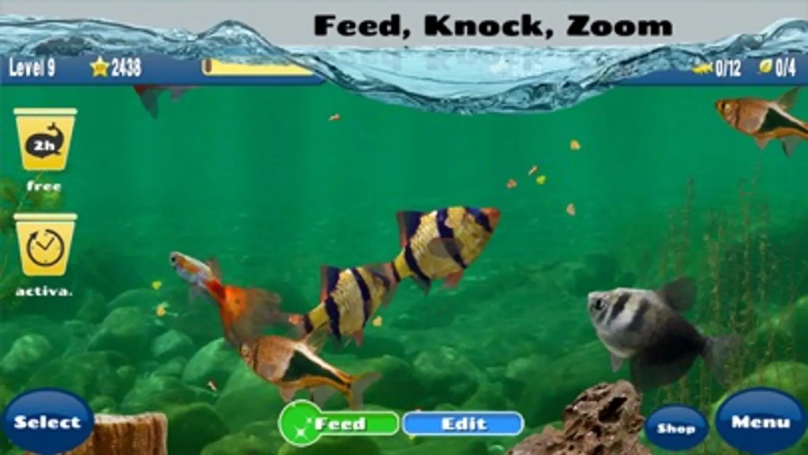Feed your vibrantly colored fish, play with them – even annoy them by tapping the glass!