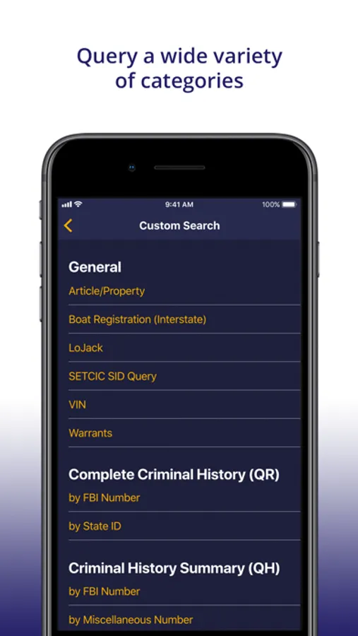 With NCITE Mobile Detective, you can query individuals, vehicles, articles, guns, and boats, as well as perform many other NLETS queries.