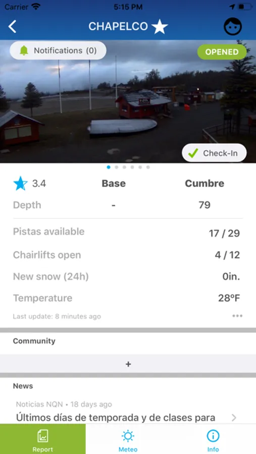 - Configurable notifications: opening / closing, thickness in the last 24 hours, snow conditions and changes in road access to the station.