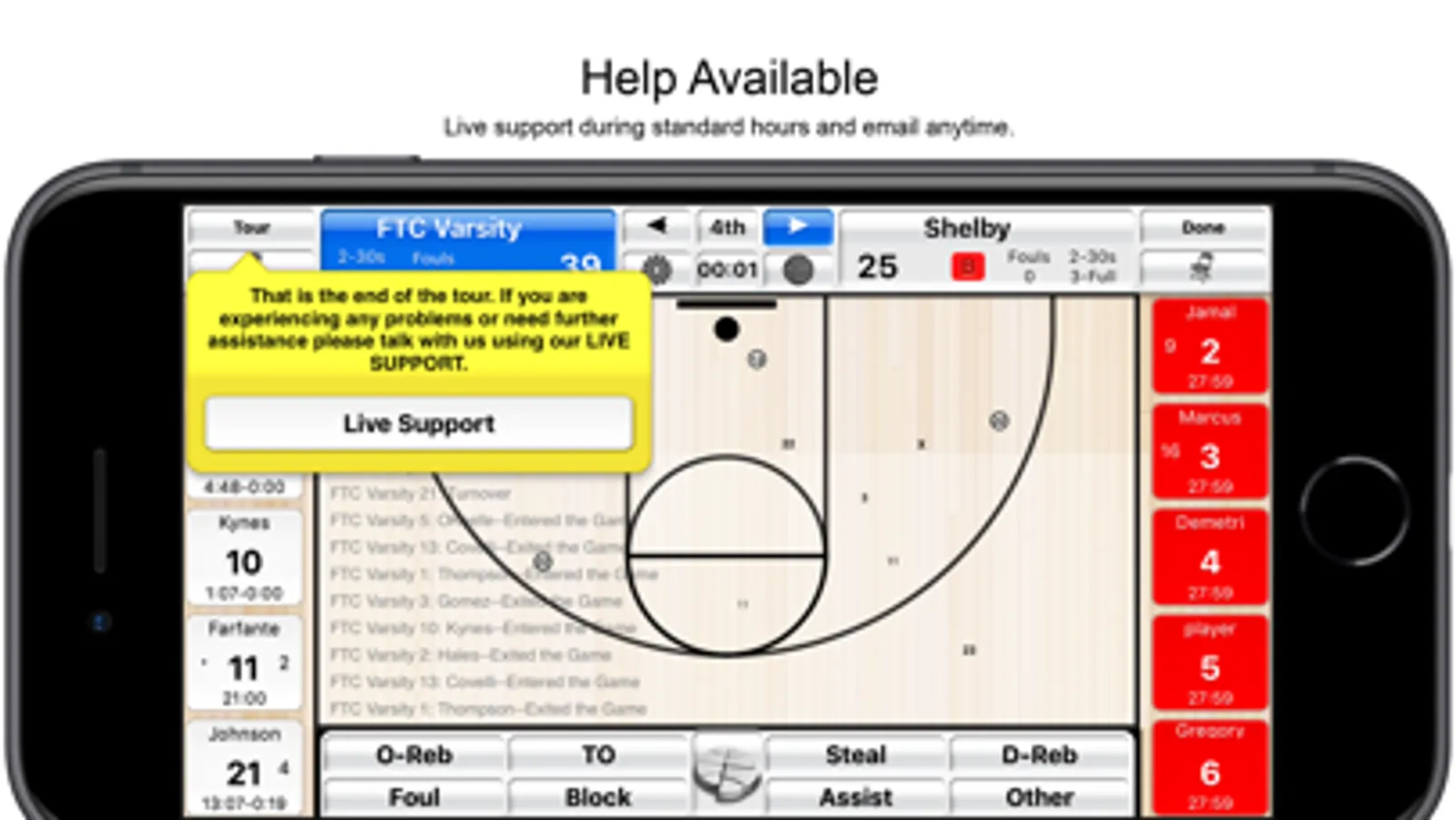 - Review and manage team fouls and timeouts.