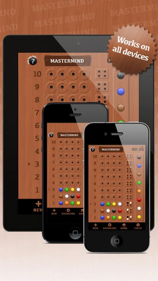 Mastermind for iOS is a classic puzzle game. The goal is to guess the hidden color combinations / code. Your opponent (iPhone, iPad or iPod) creates a combination of up to four colors and hides them at the top of the game board. Your task is to try out different color combinations until you match the hidden code.
