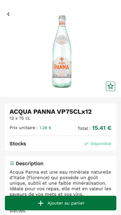 • Fiches produits commentées: nom du producteur, degré d'alcool, conditionnement de vente avec calcul automatique du prix total mais aussi liste des produits similaires