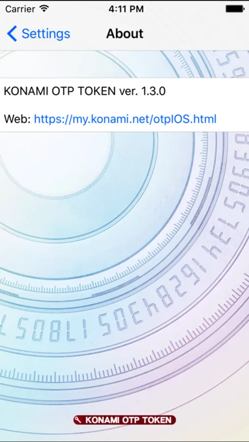 This software token can be used for the KONAMI OTP (One-Time Password) Service.