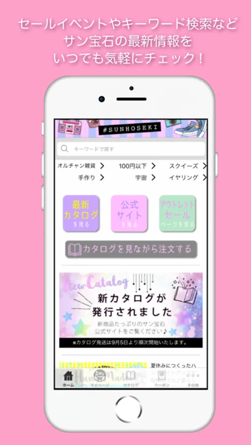 サン宝石のイベント情報や限定クーポンはもちろん、サン宝石のカタログがスマホで見られる機能もあり、さらに便利に使いやすくなりました!