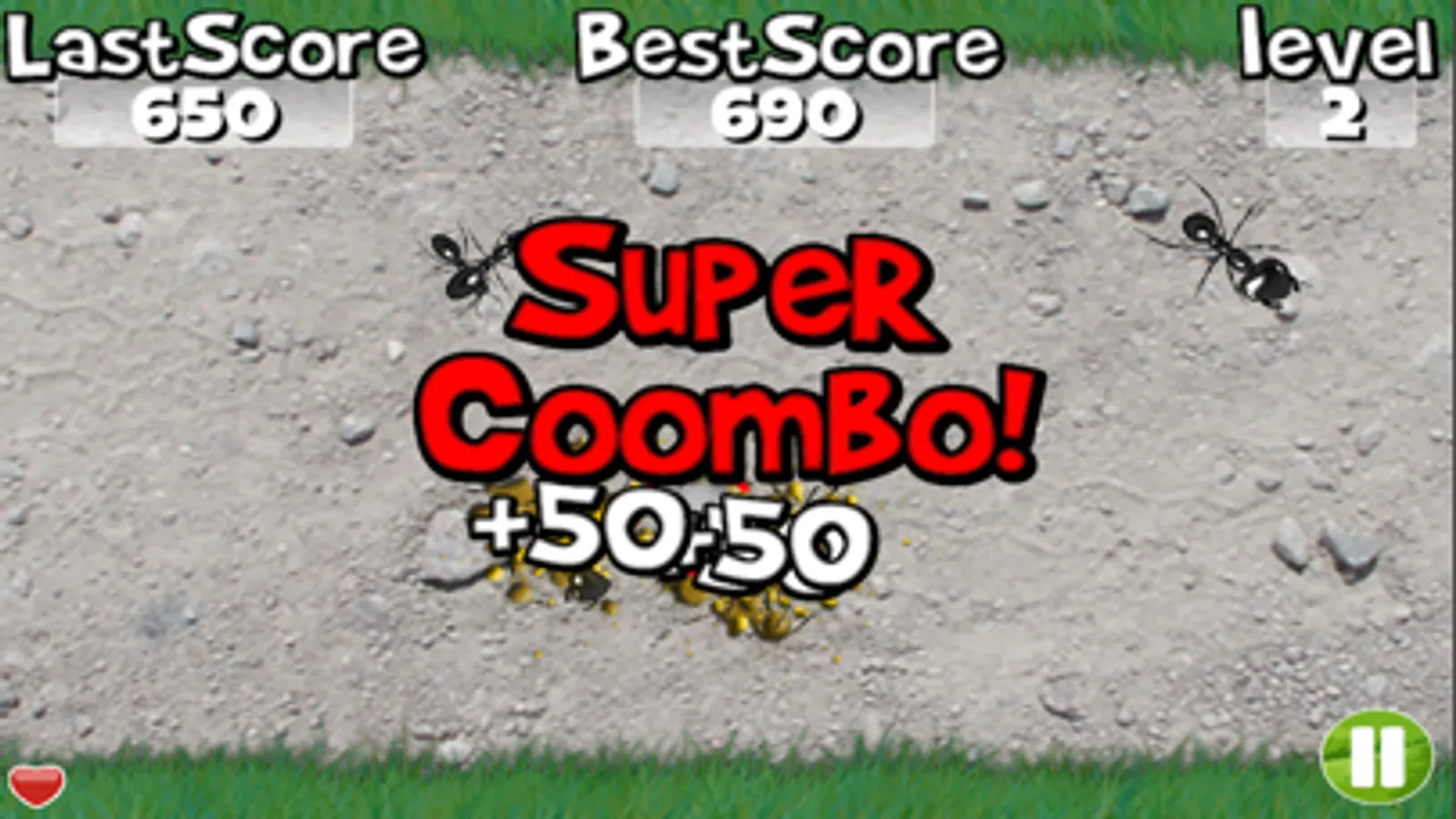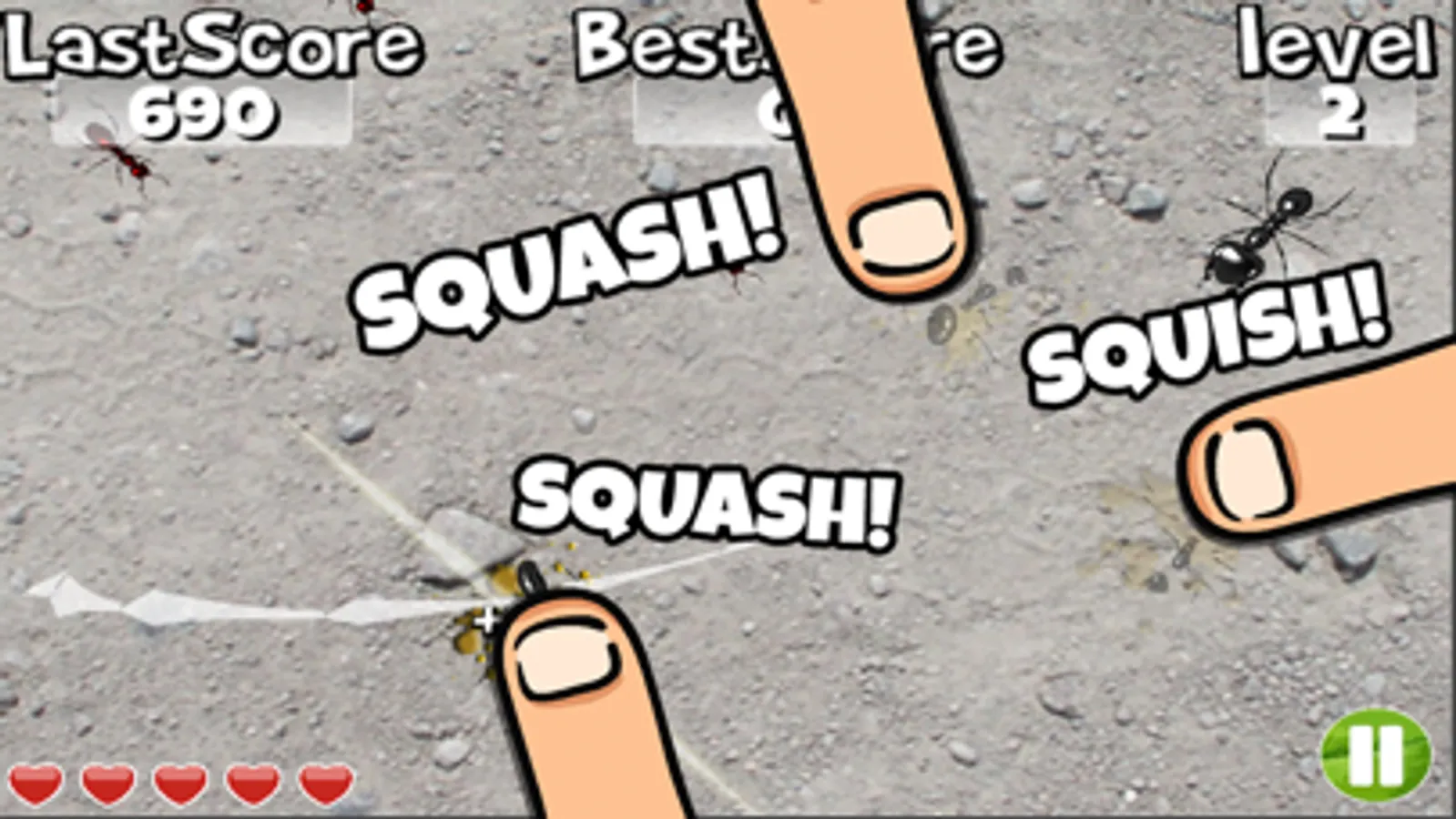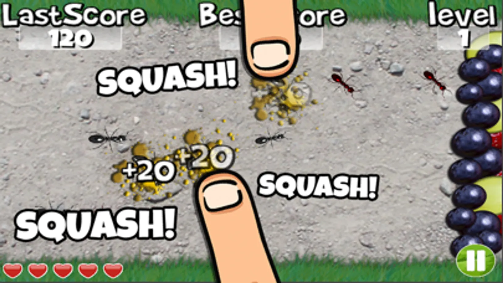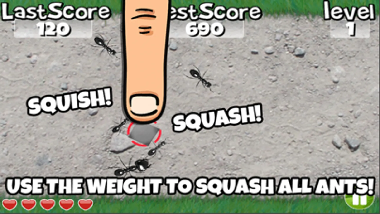 Tap all the ants that appear on the screen with your fingers, before they leave the screen be very careful don't tap the red ants, they are very dangerous.