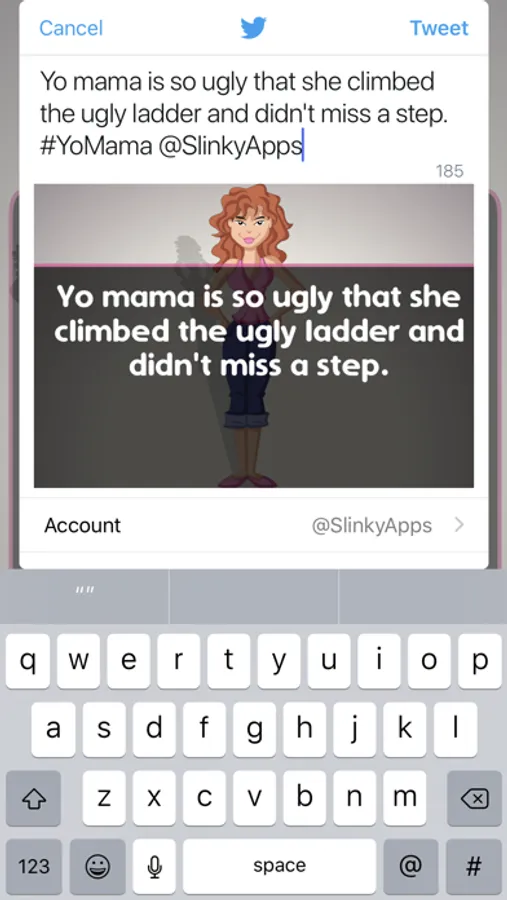 You can also share your Yo Mama joke on and image via text, email and social media.