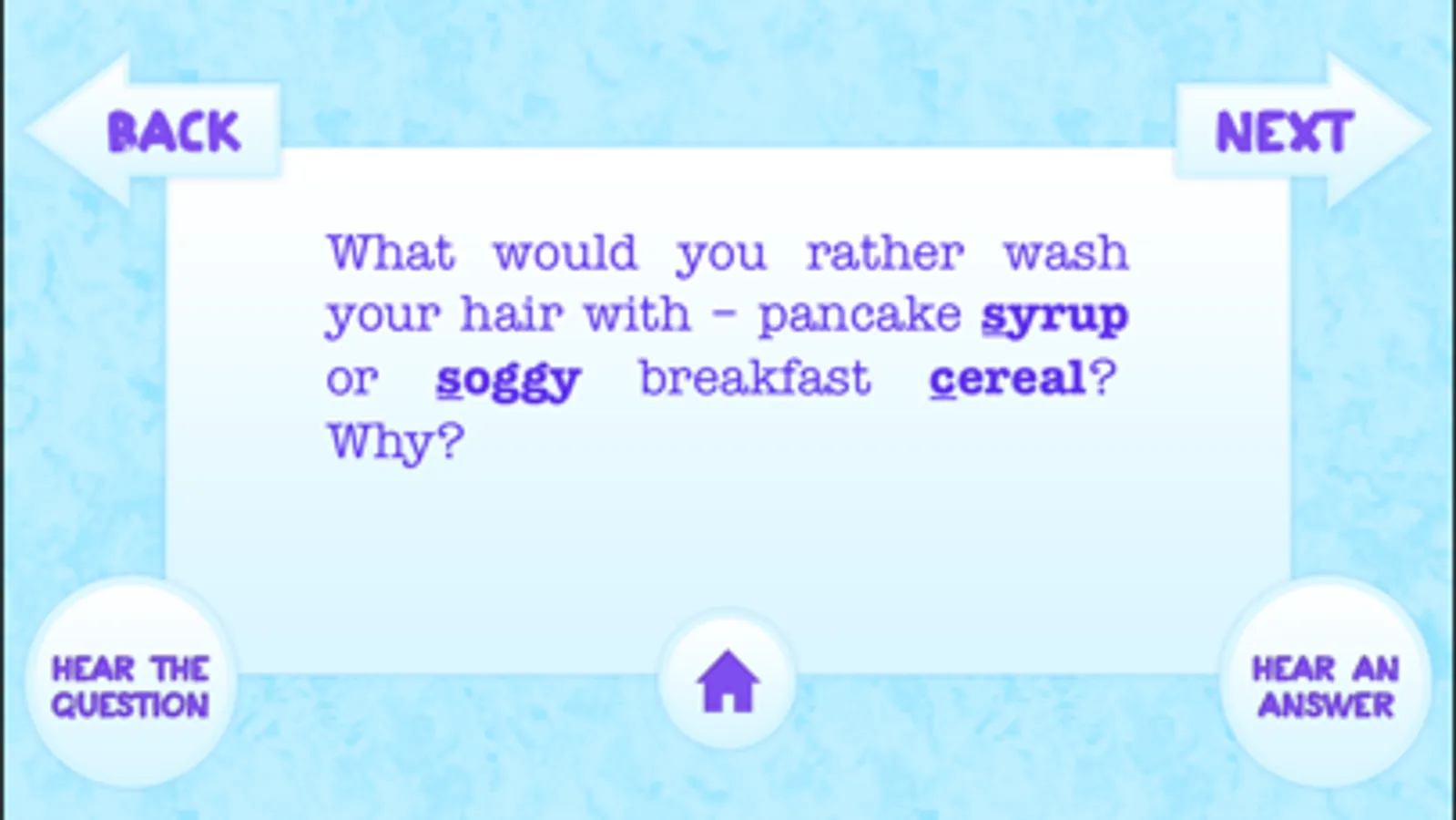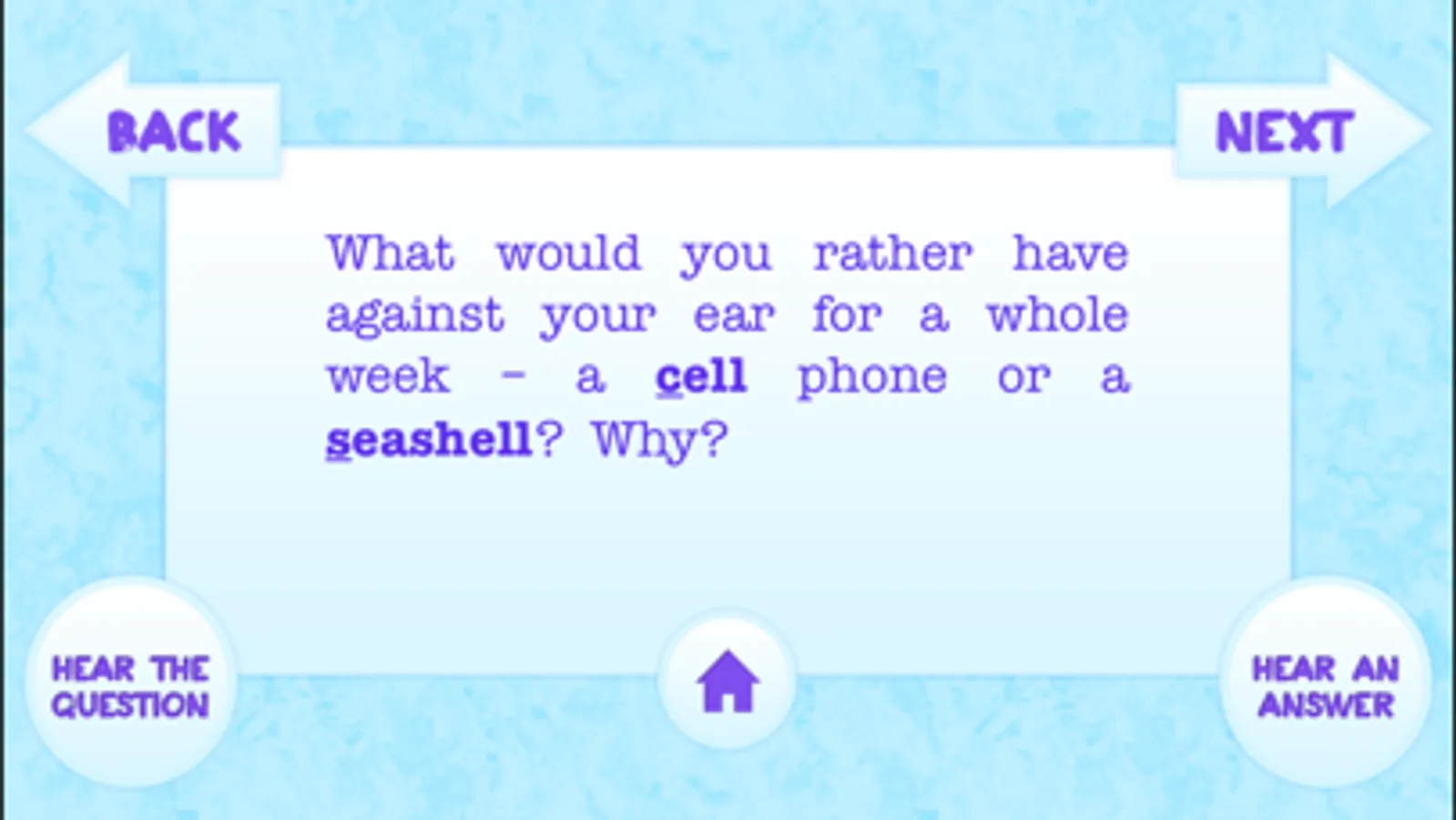 -Hear an answer: each multiple choice question has an example audio response that children get a kick out of.