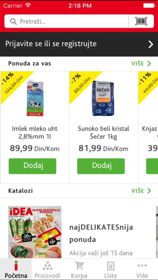 IDEA mobilna aplikacija je najjednostavniji način za kupovinu svih proizvoda potrebnih za Vaše domaćinstvo. Aplikacijom možete pregledati sve trenutne akcije kao i dodati proizvode u korpu skeniranjem njihovih bar kodova.Pretražite između 12.000 hiljada artikala, informišite se o najnovijim akcijama, naručite i rezervišite Vašu dostavu a pritom uštedite.