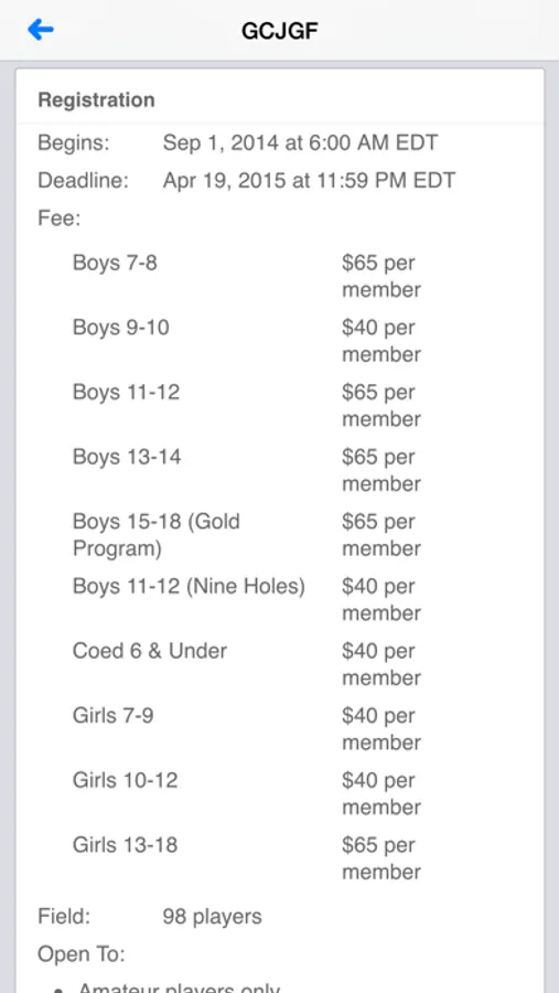 • View GCJGF tournament info and leaderboards.