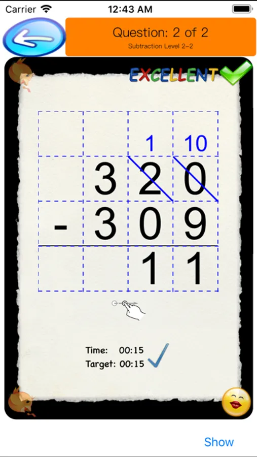 • Detailed solutions for each question. The solutions are detailed out on virtual graph paper, and help students with understanding concepts such as Carrying and Borrowing.